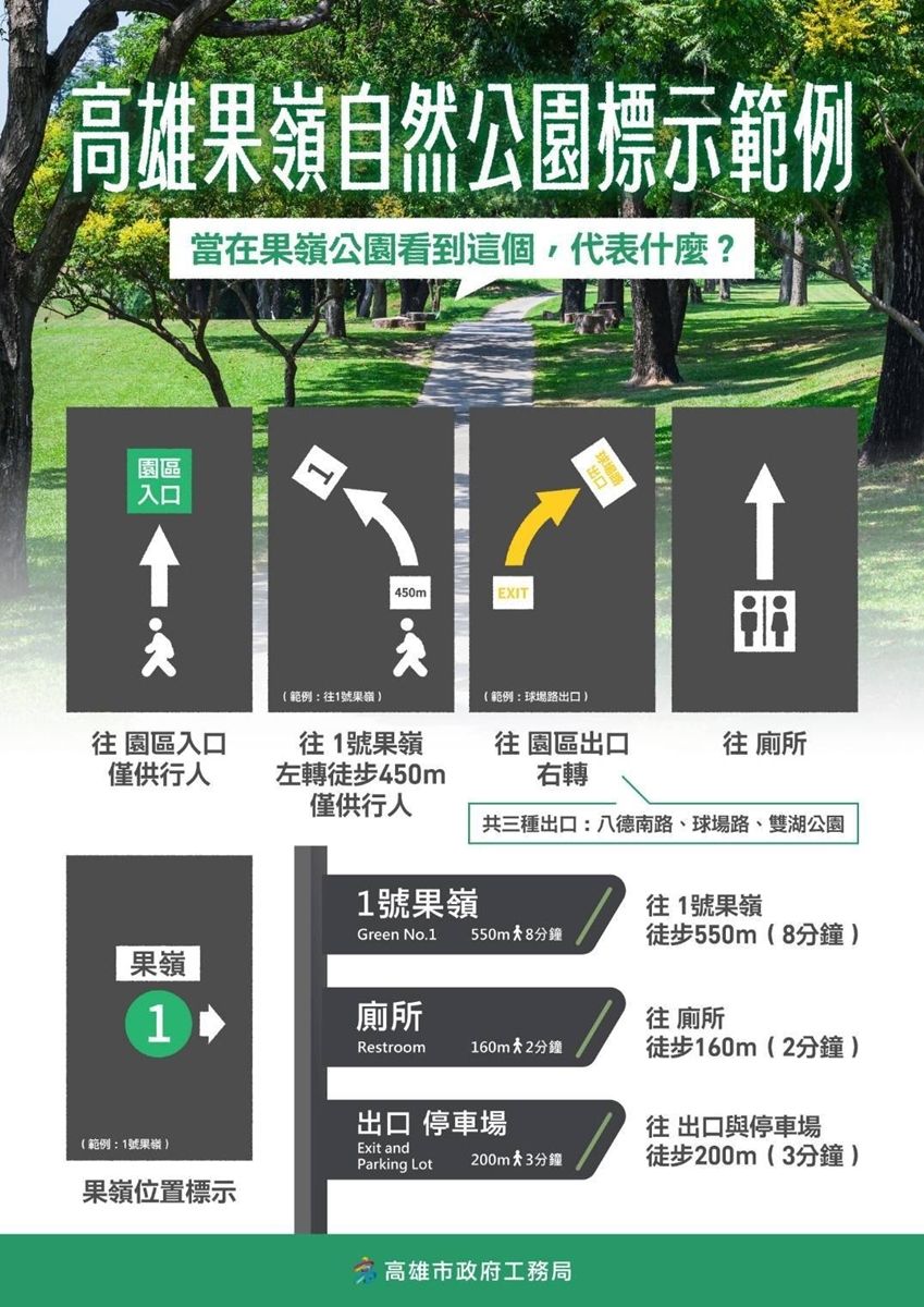 第一次來果嶺自然公園運動的朋友們都會看到地上的標示號,高雄市工務局也很貼心的做了張小卡讓遊客們知曉