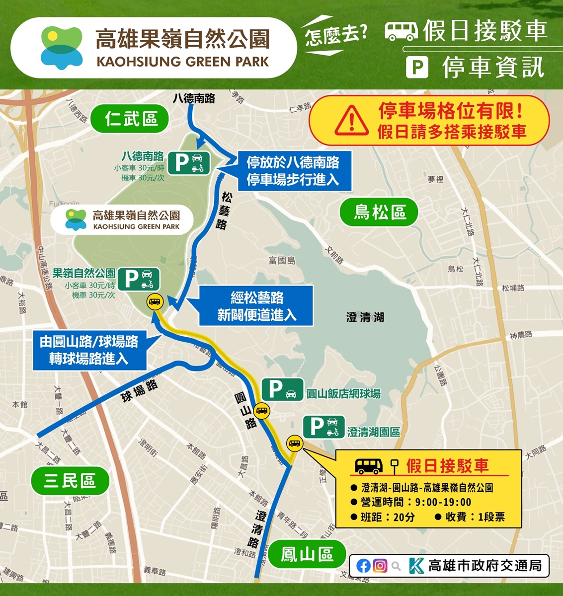 高雄市政府提供的交通接駁車以及停車入口方式會更清楚一點!!