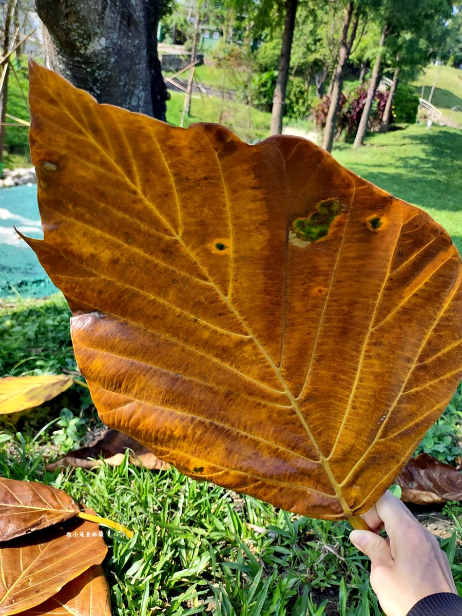 有遊客詢問園區內的工作人員,掉地上的大扇葉可以拿走嗎?