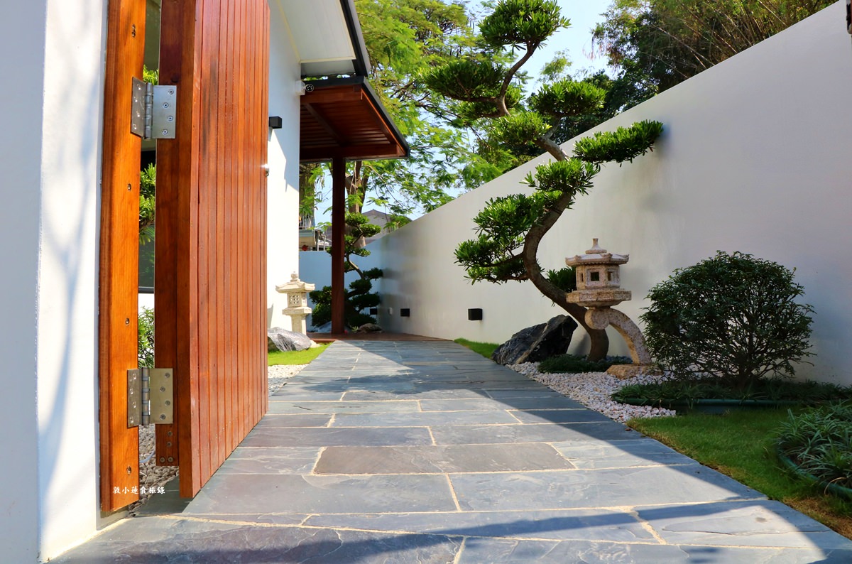 小琉球民宿眾多但還沒有一間是日式庭院設計,純白的外觀,灰岩色的屋簷,搭配石板階梯