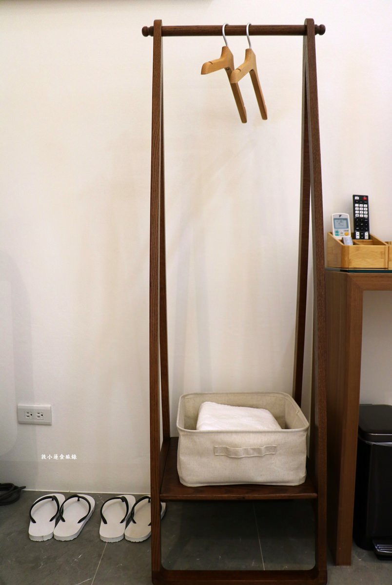 我很喜歡這種衣架衣服較通風不會悶住,布籃裡是衛浴用的大毛巾,沒有提供小毛巾,大家要自己帶喔