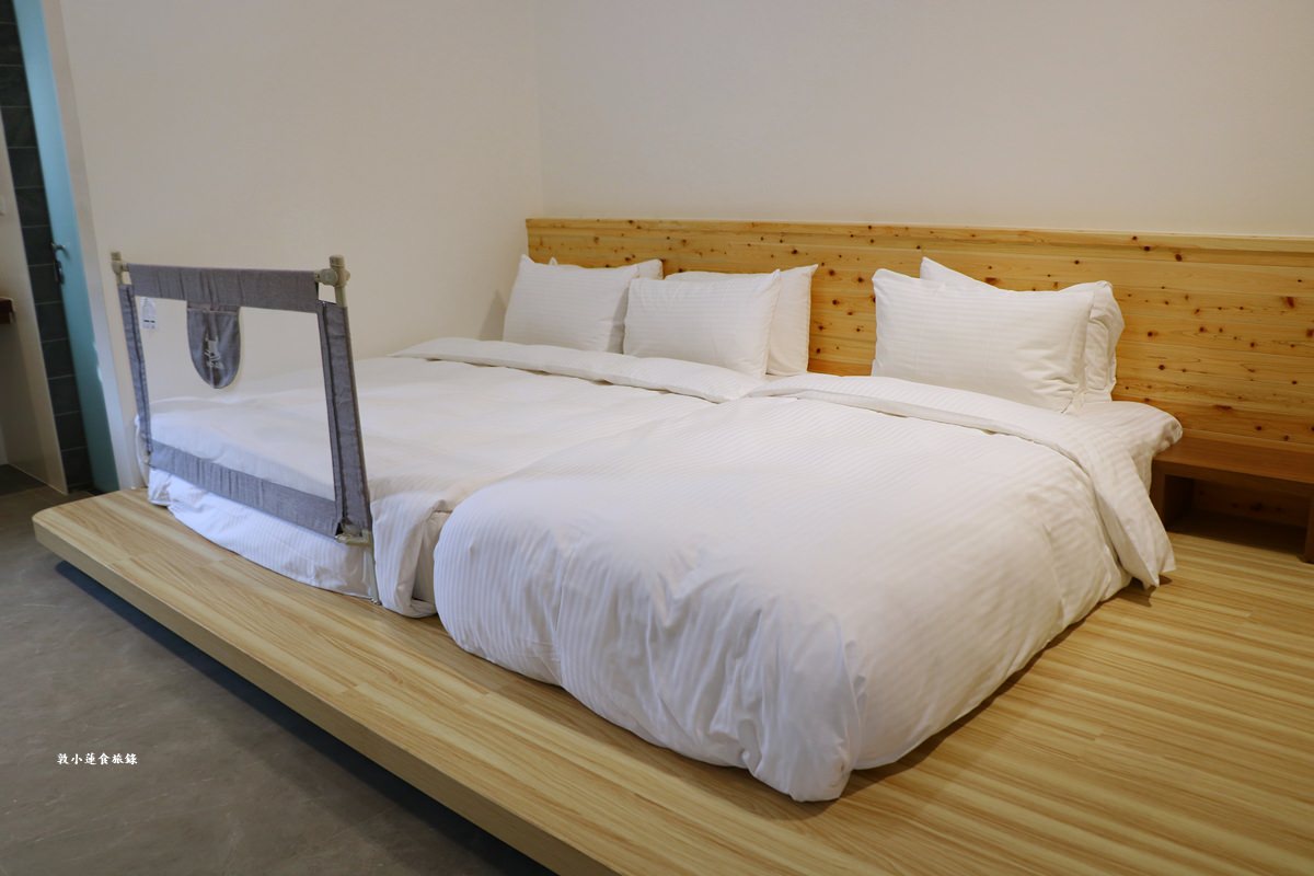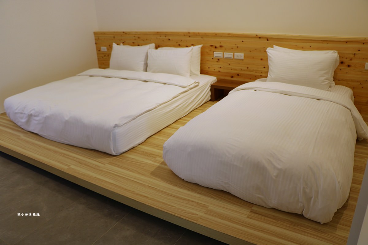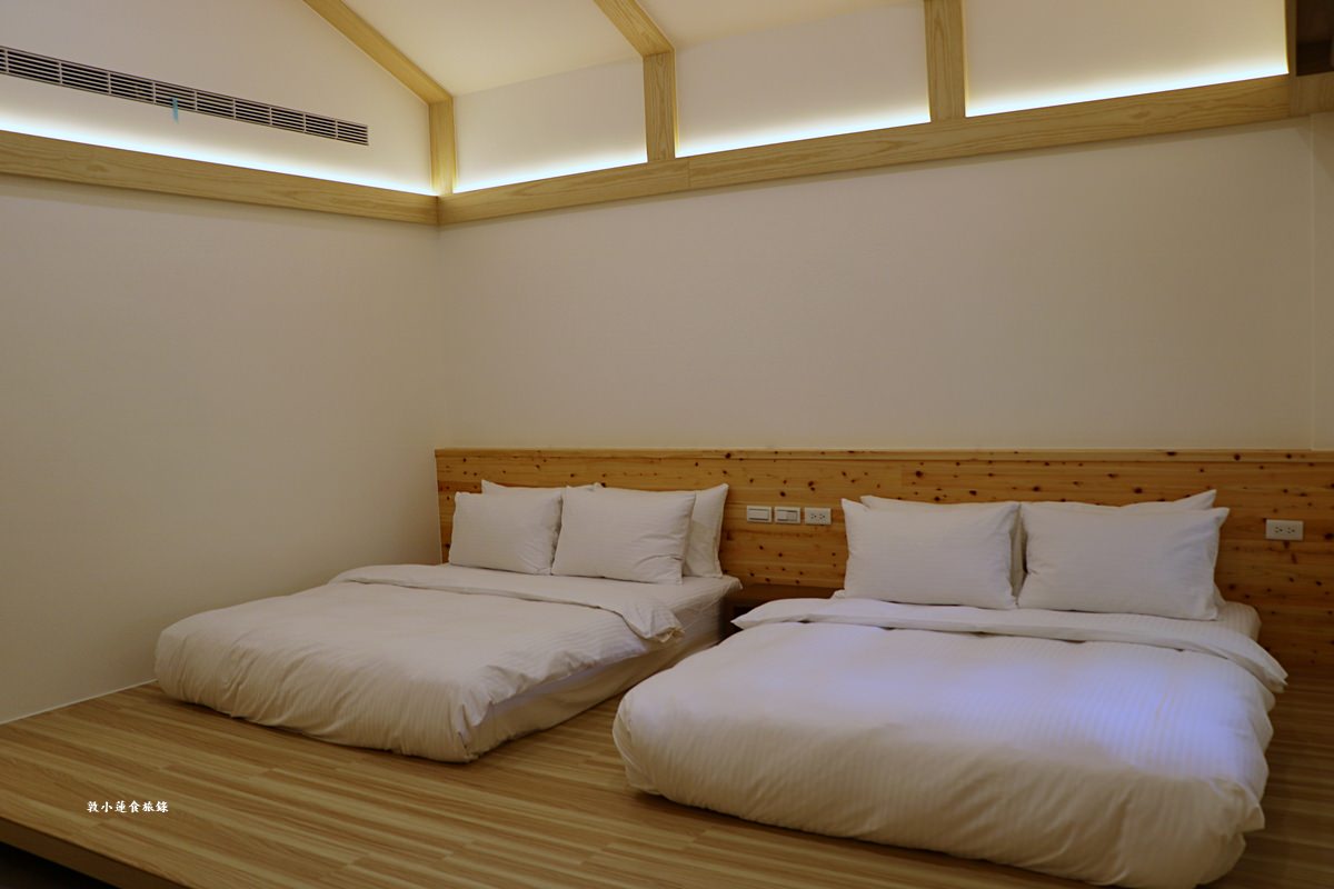 10坪大的4人房是兩張標準雙人床,每間房型最多可以再加1床,可以上 九坪別院訂房網站 查詢