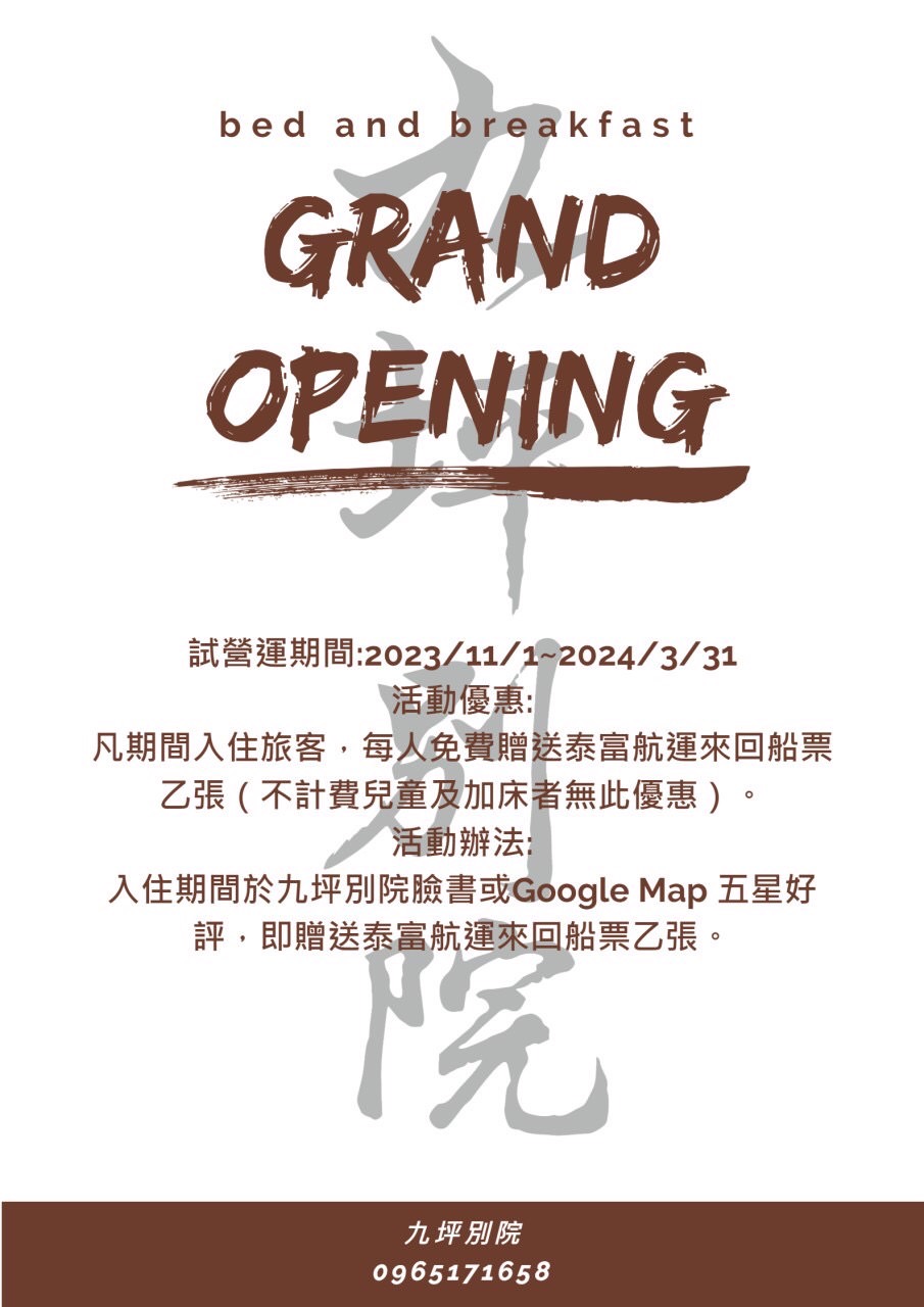 入住期間於九坪別院臉書或Google Map 五星好評。
