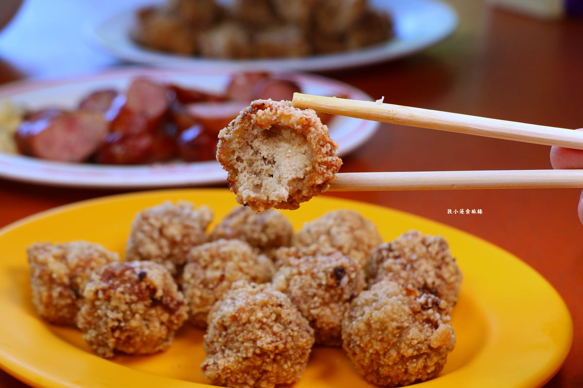 外表看起來很像鹹酥雞的肉塊,口感吃起來也挺像但還是有差別,裡面的餡是滿滿的劍旗魚卵
