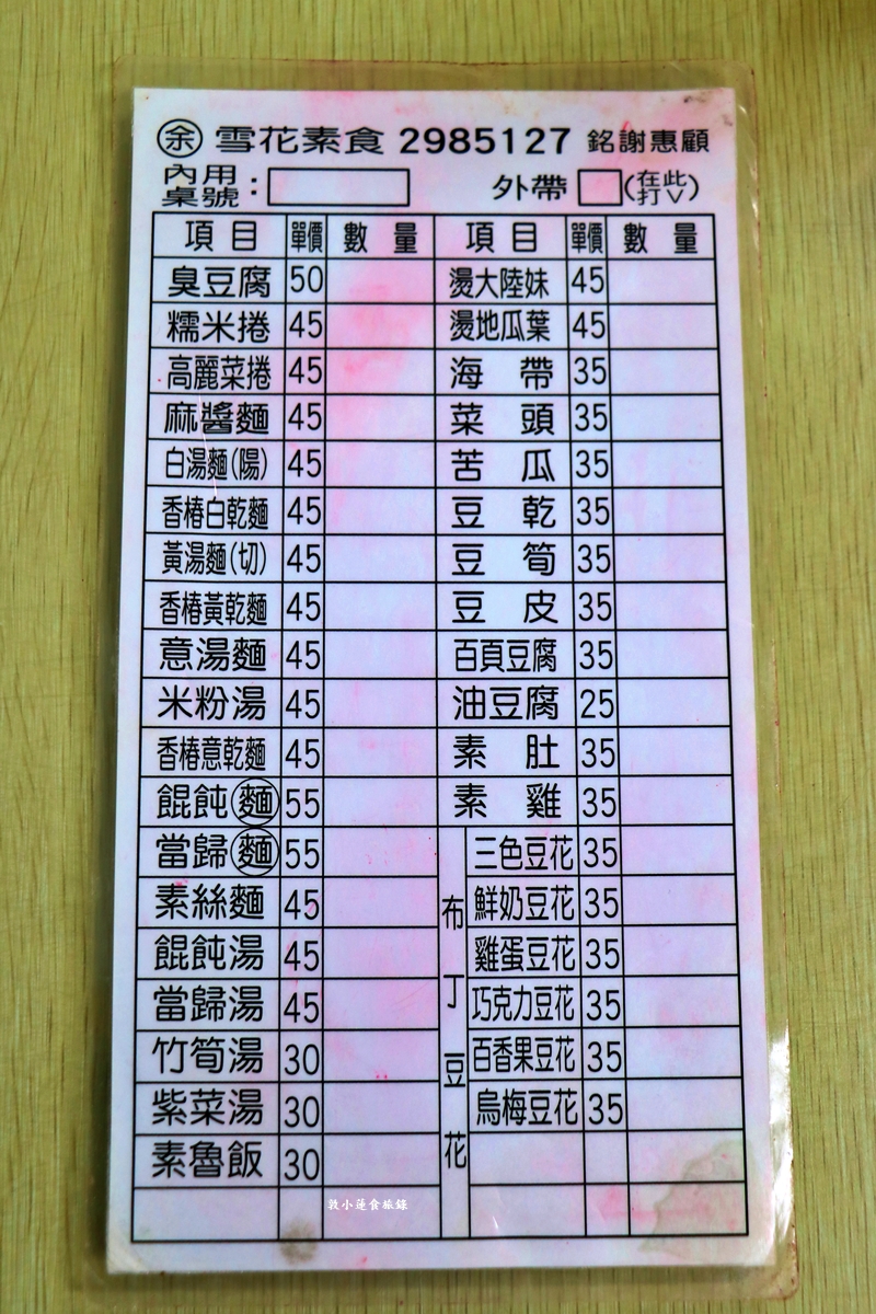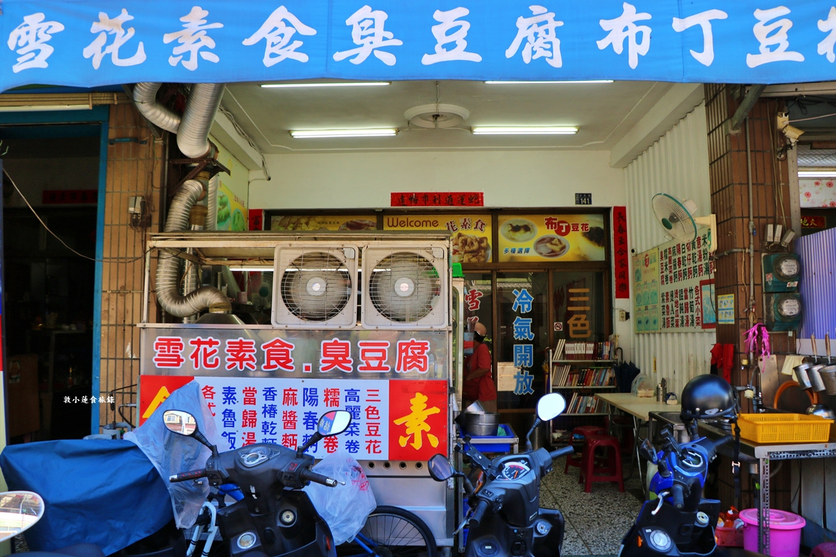 雪花素食挺特別有賣雞蛋豆花,菜單上的糯米腸是精典小吃,臭豆腐則是必點每桌必有一份!!
