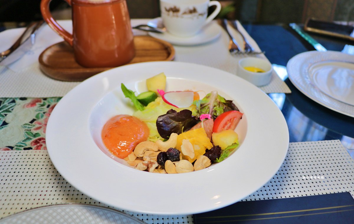 莊園沙拉每一季都會做變化,下一次再來可能內容就會不同,橘色千島醬略帶酸甜滋味