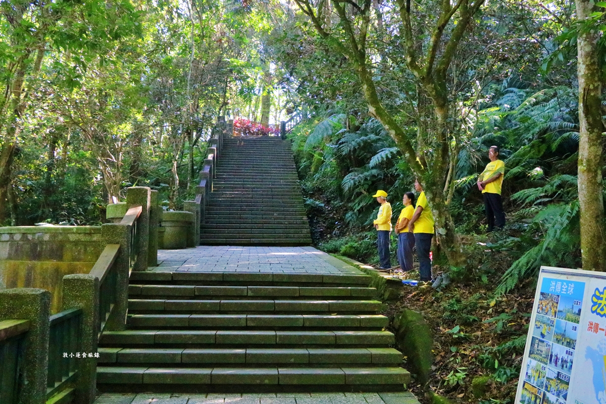 玄光寺正前面以及左側邊都有石階,左邊的石階較為安靜不吵雜,轉個彎就看到法輪功