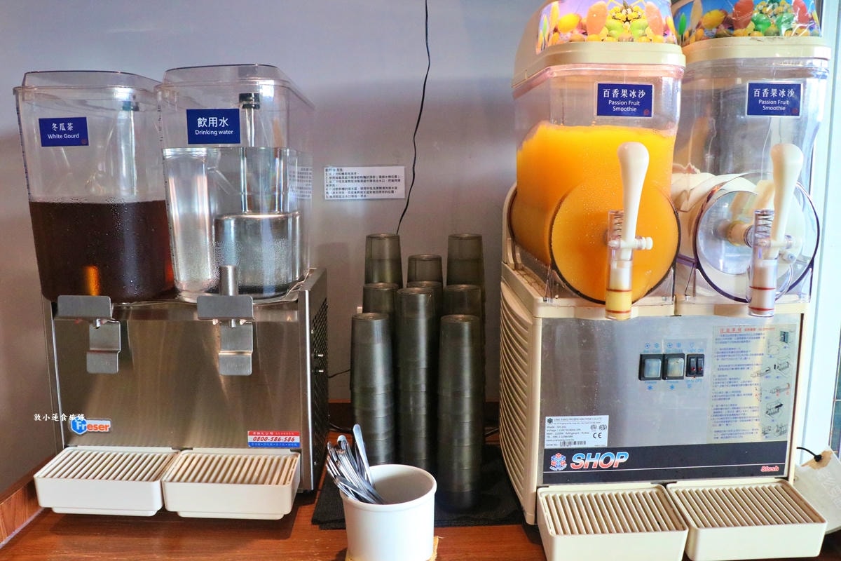 飲料方面有冬瓜茶、白開水以及百香果冰沙,