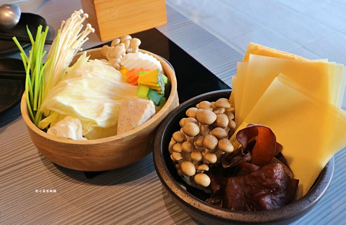 素食物有三種鍋物,經典蔬菜菇菇鍋、剝皮辣椒蔬菜菇菇鍋、起司牛奶蔬菜菇菇鍋