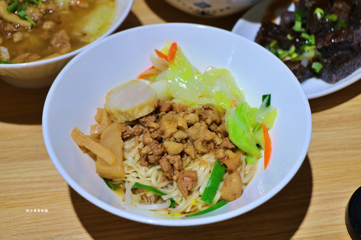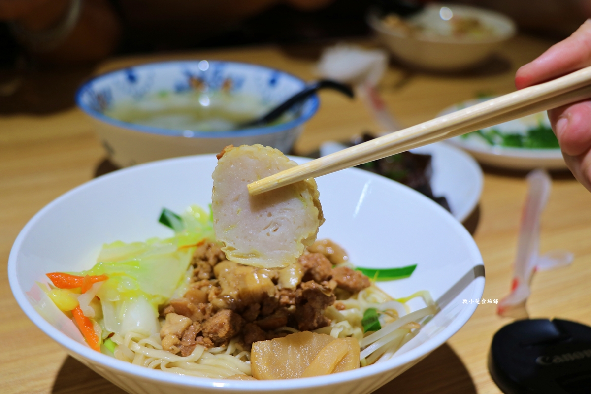 肉燥乾意麵配料挺豐盛,有清甜的高麗菜還有我最討厭的荳芽菜以及雞捲和筍干